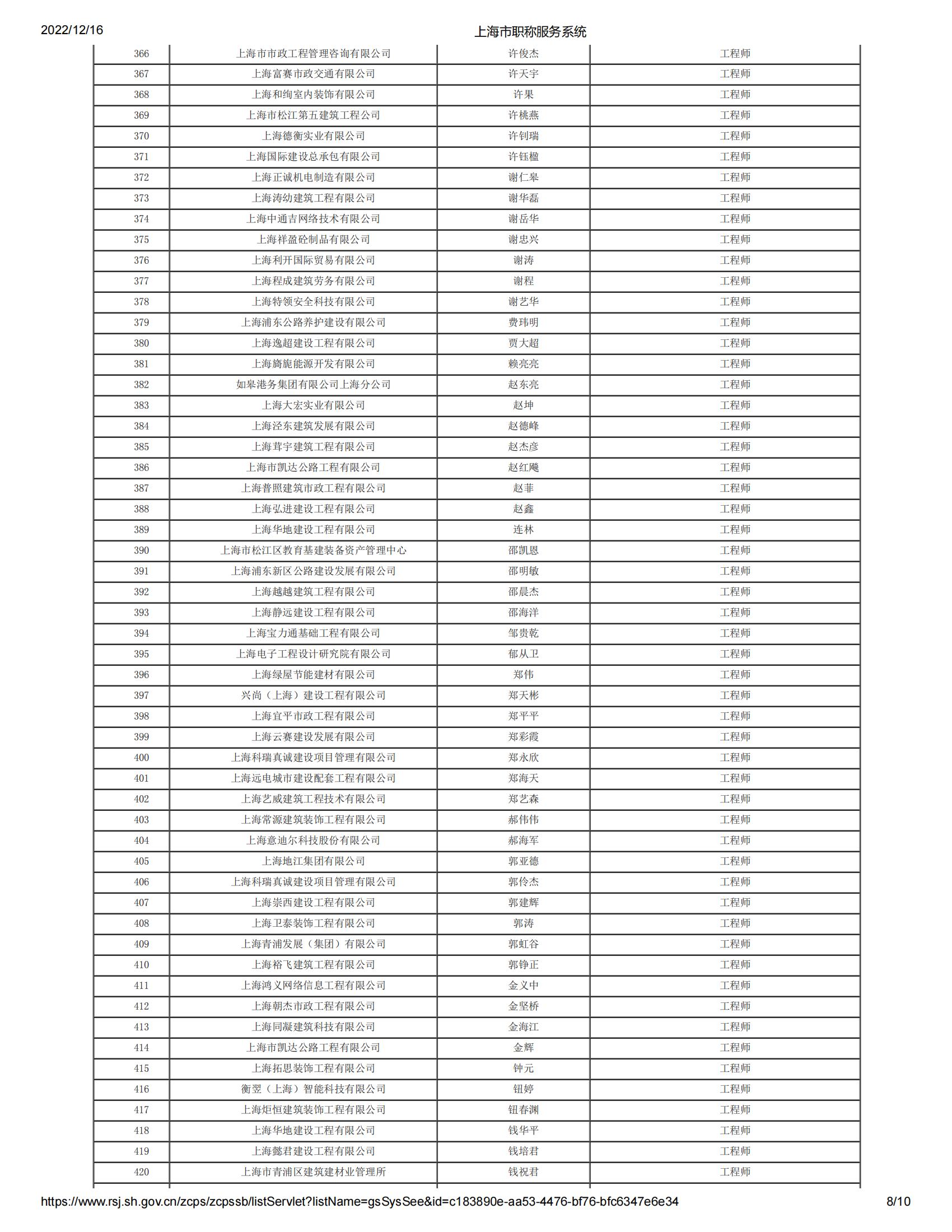 2022年度上海市工程系列機電專業中級專業技術職務任職資格第三評審委員會(嘉定)評審通過人員名單公示