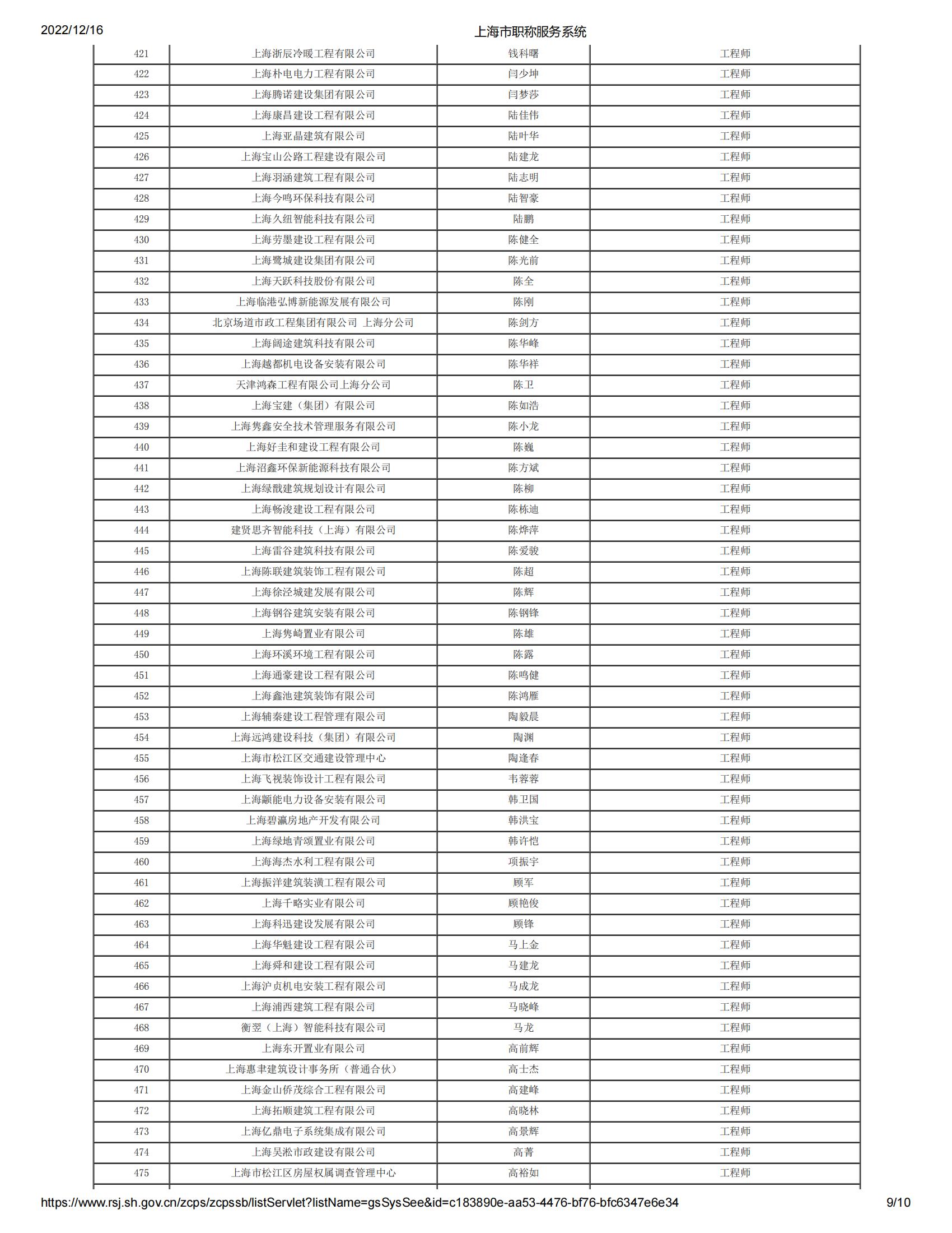 2022年度上海市工程系列郊區建筑工程中級專業技術職務任職資格評審委員會評審通過人員名單公示
