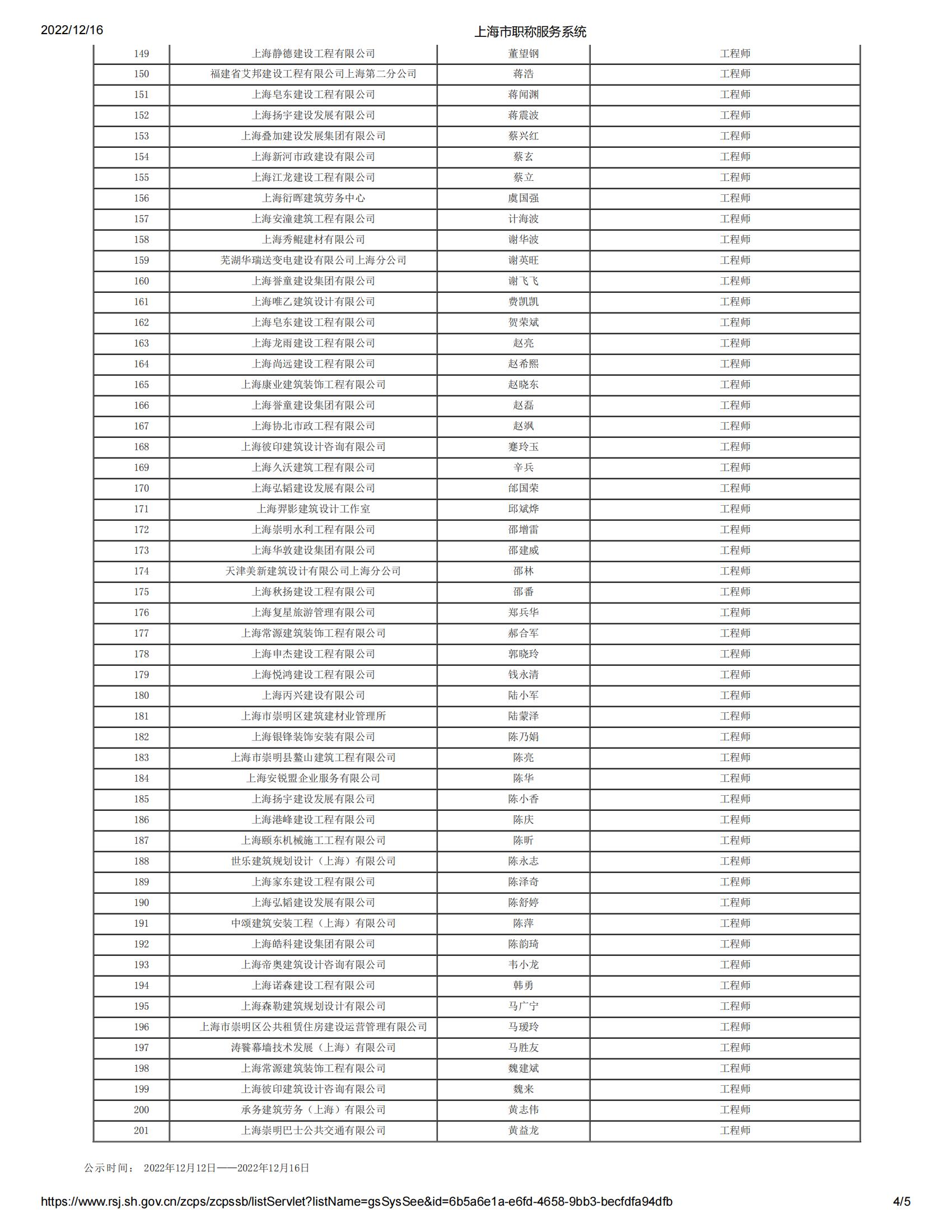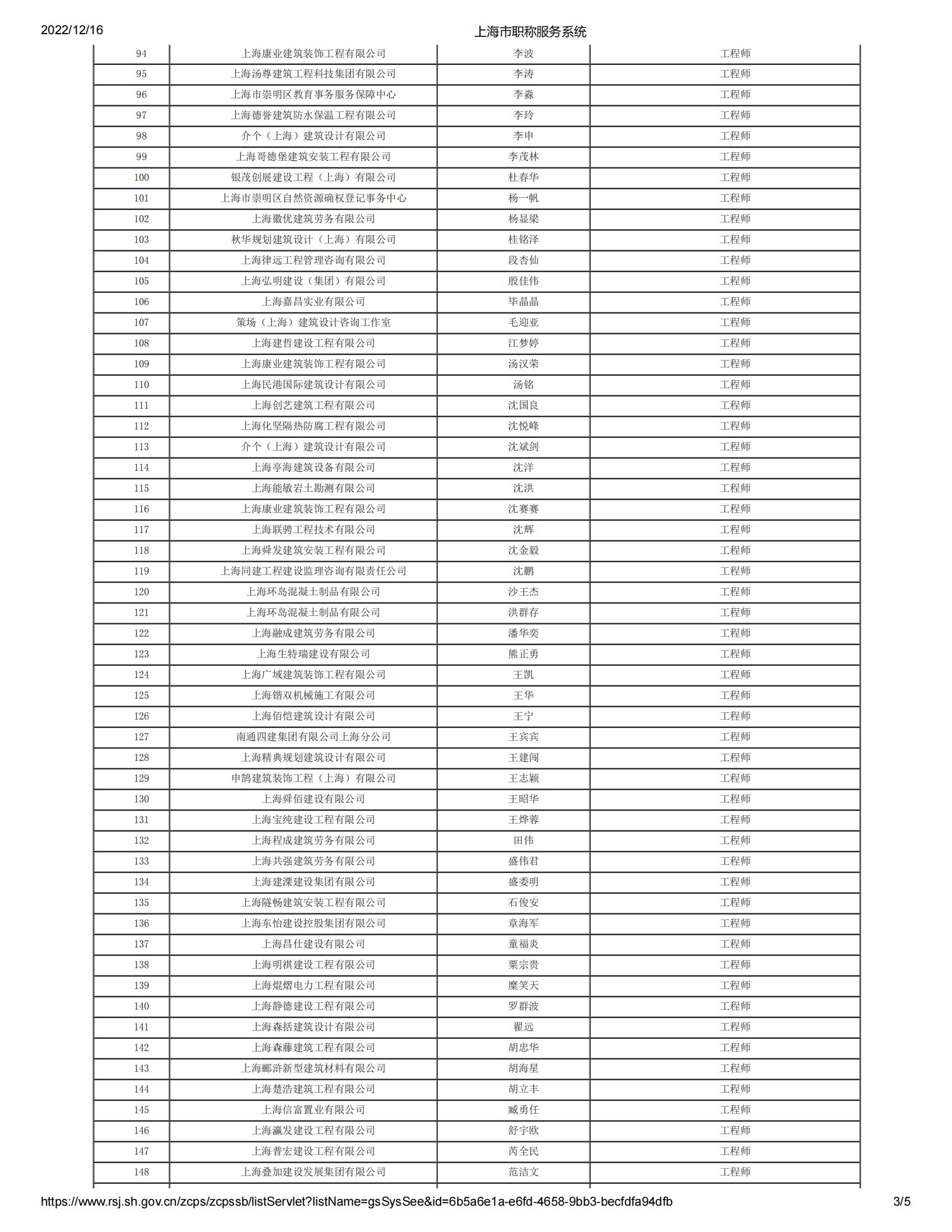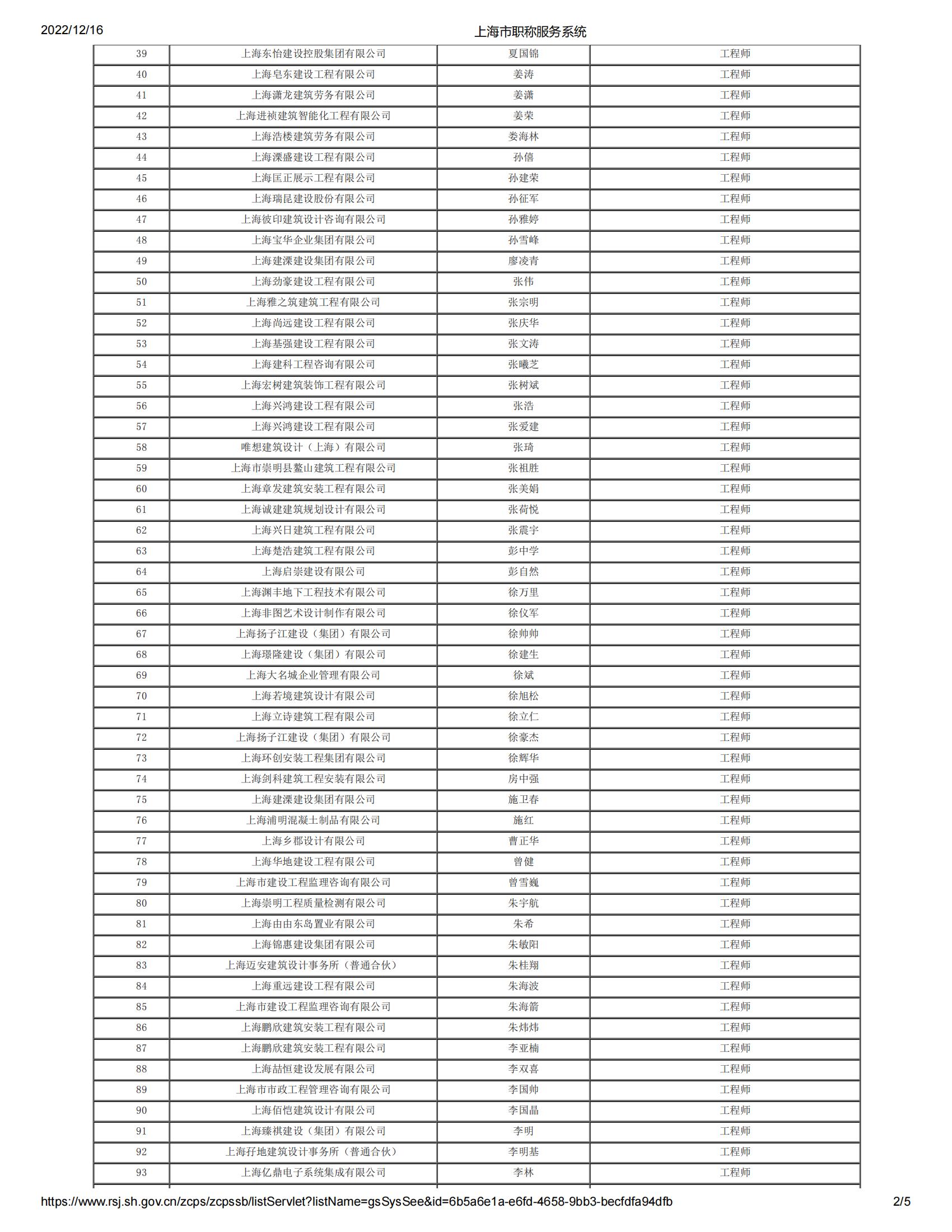 2022年度上海市工程系列建筑土建專業中級職稱評審委員會(嘉定區)評審通過人員名單公示