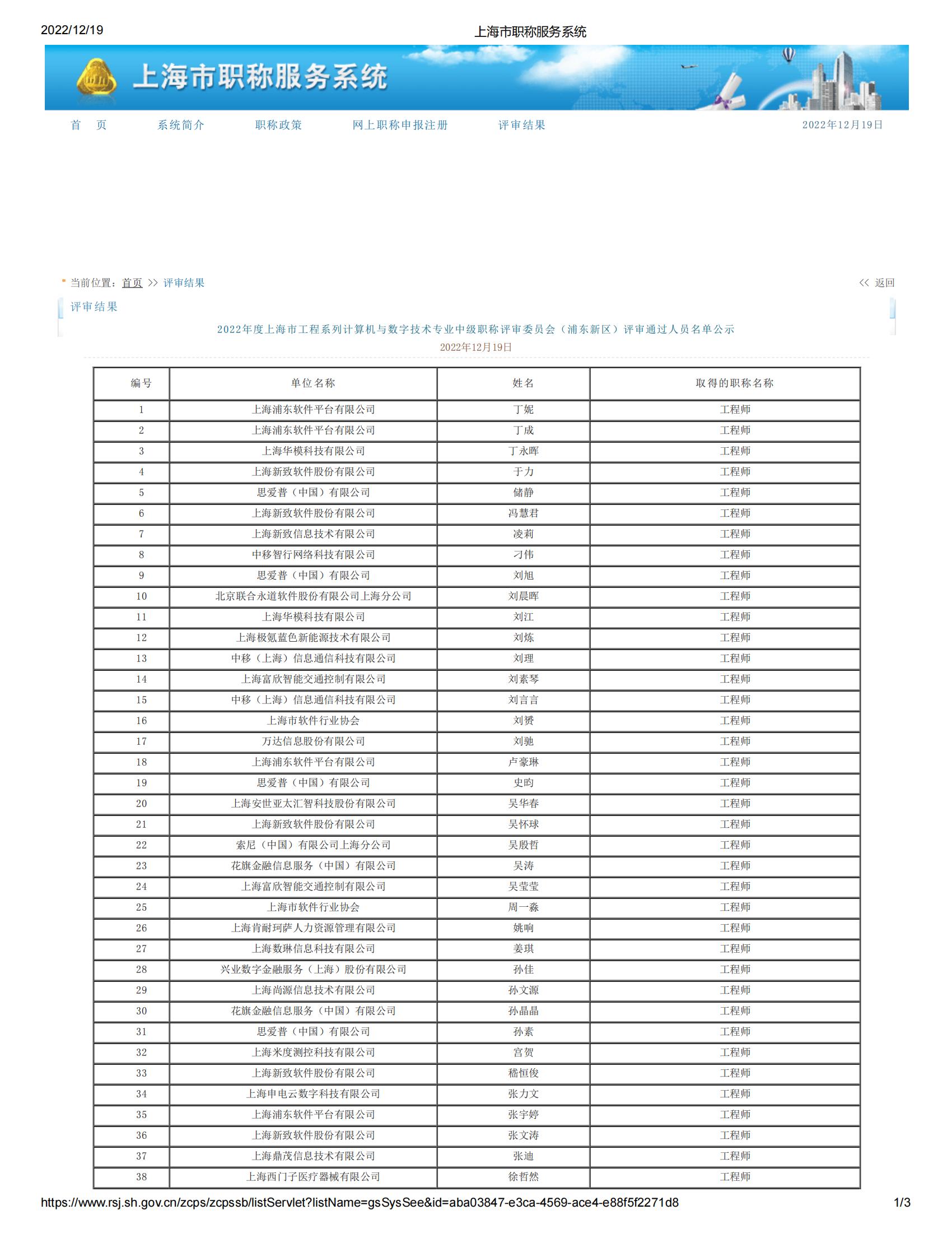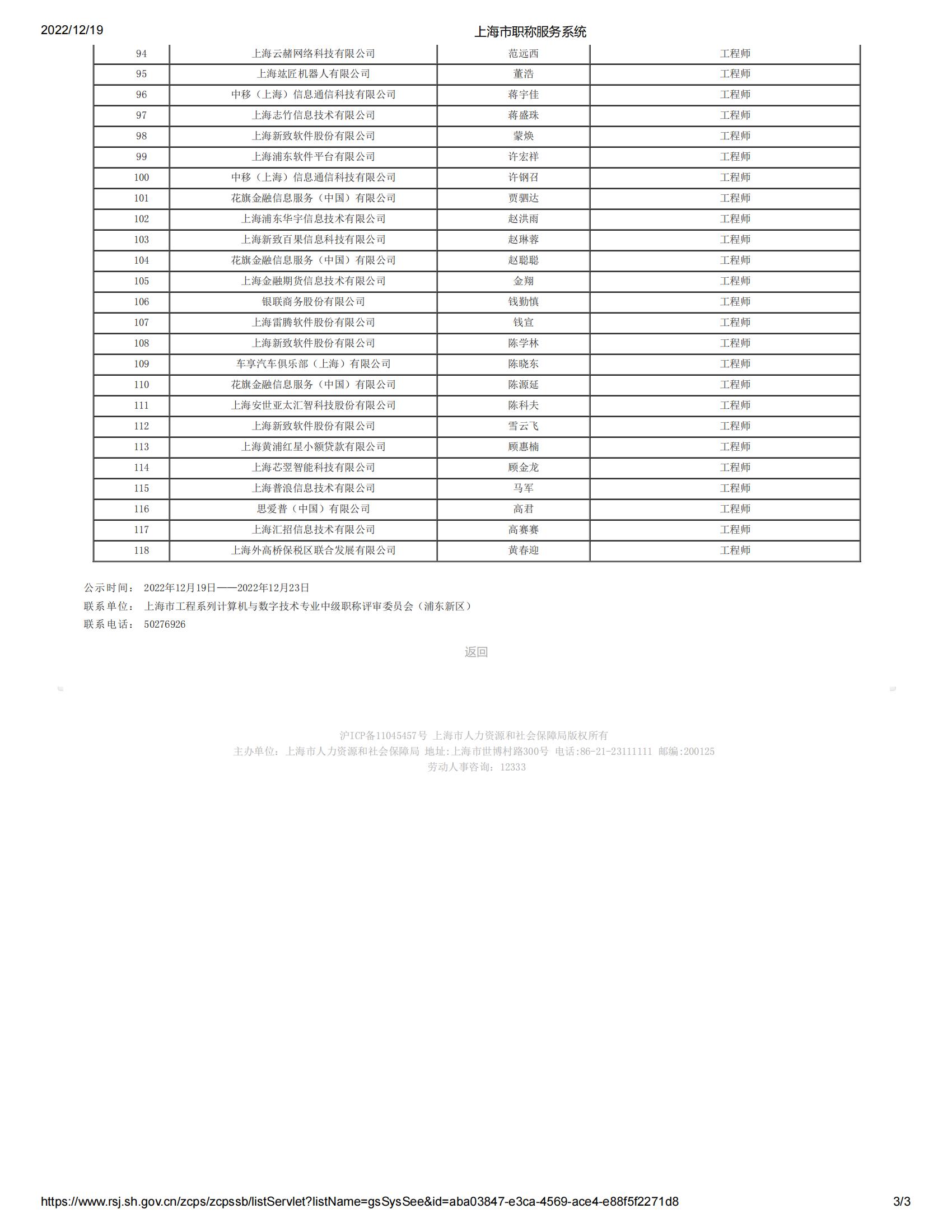 2022年度上海市工程系列計(jì)算機(jī)與數(shù)字技術(shù)專業(yè)中級(jí)職稱評(píng)審委員會(huì)(浦東新區(qū))評(píng)審?fù)ㄟ^(guò)人員名單公示